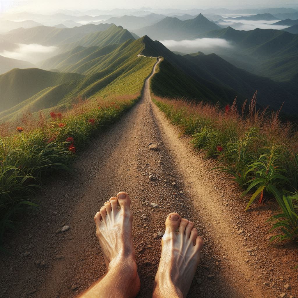 赤脚走在黄土路上